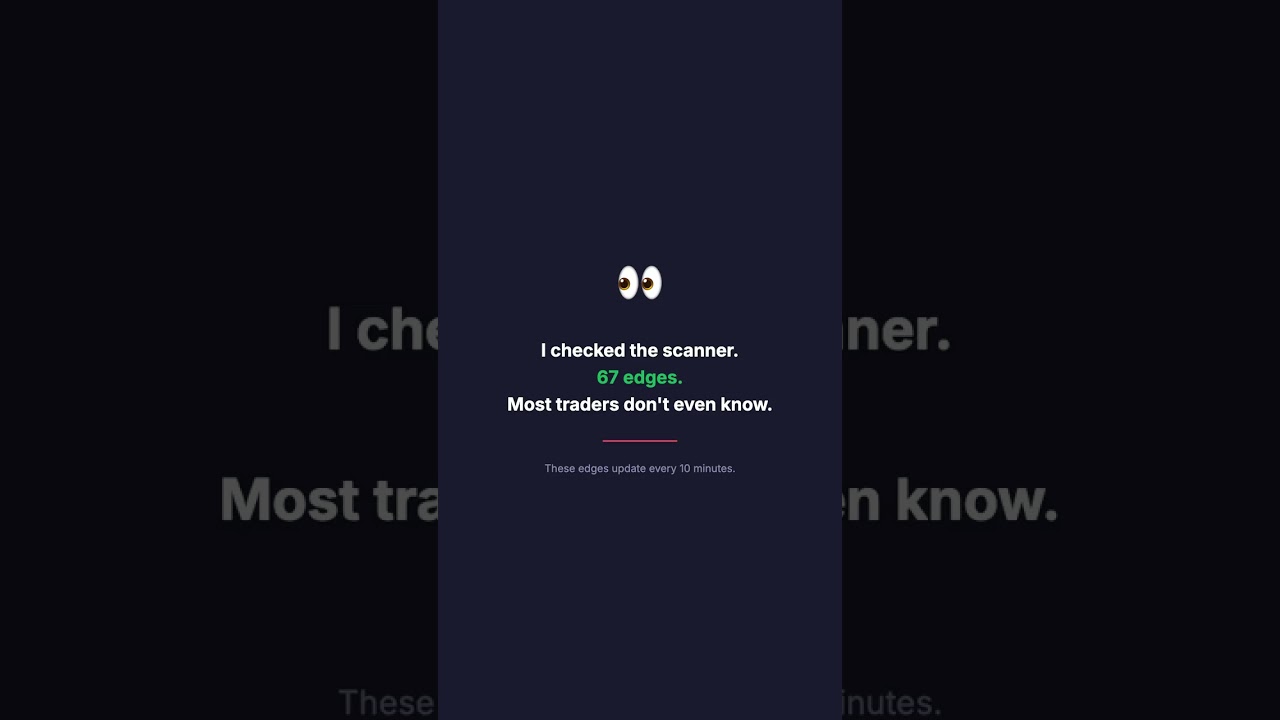 🎯 Weekly Edge Scoreboard — Did They Hit? https://www.youtube.com/watch?v=eUyU287PXXY A 16 percent edge. Sitting there for hours. SPCE Earnings. The market said 22 cents. We said 38. By the time most people noticed, it was gone. Edge scouts. EdgeScouts scans prediction markets every 10 minutes, comparing prices to sharp bookmaker odds and options-implied probabilities to find mispriced bets. 📊 Free edge alerts → https://edgescouts.com 🐦 @EdgeScouts #polymarket #predictionmarkets #edgescouts #trading #edges #spce #shorts Tyler Trades